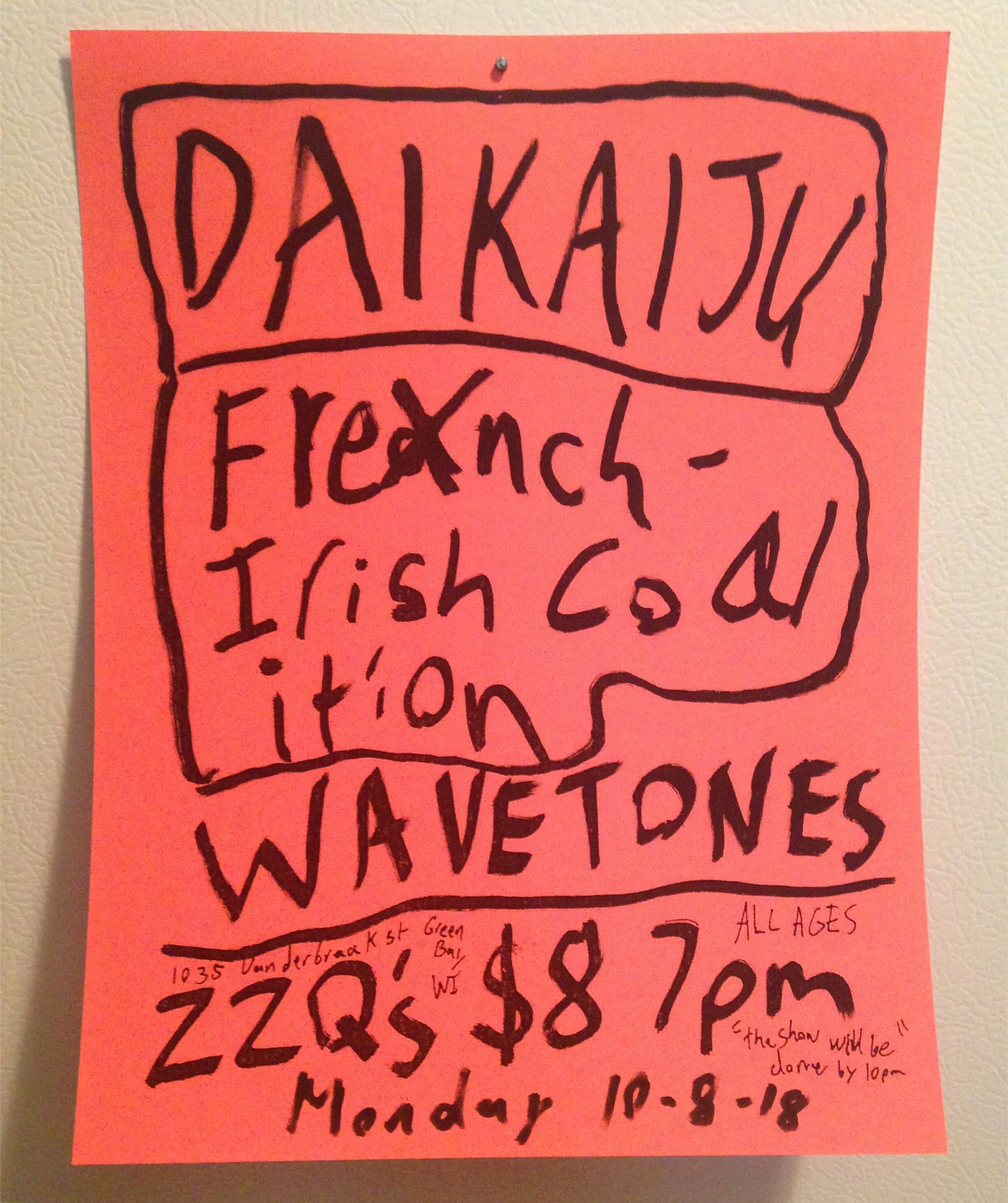 Daikaiju, French Irish Coalition, and Wavetones @ Zozo's Kitchen Poster (2018)